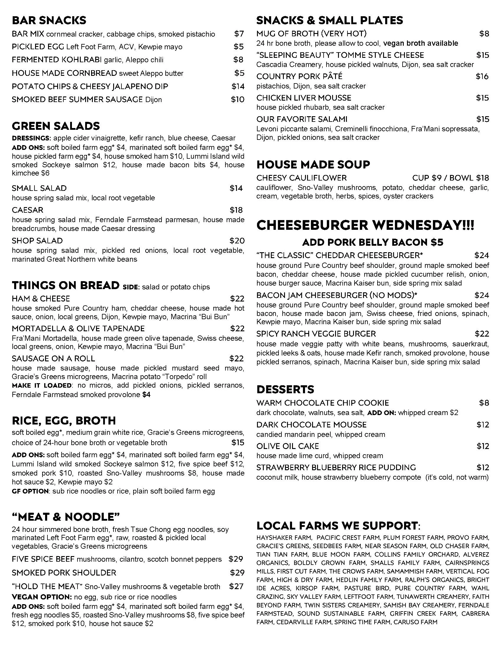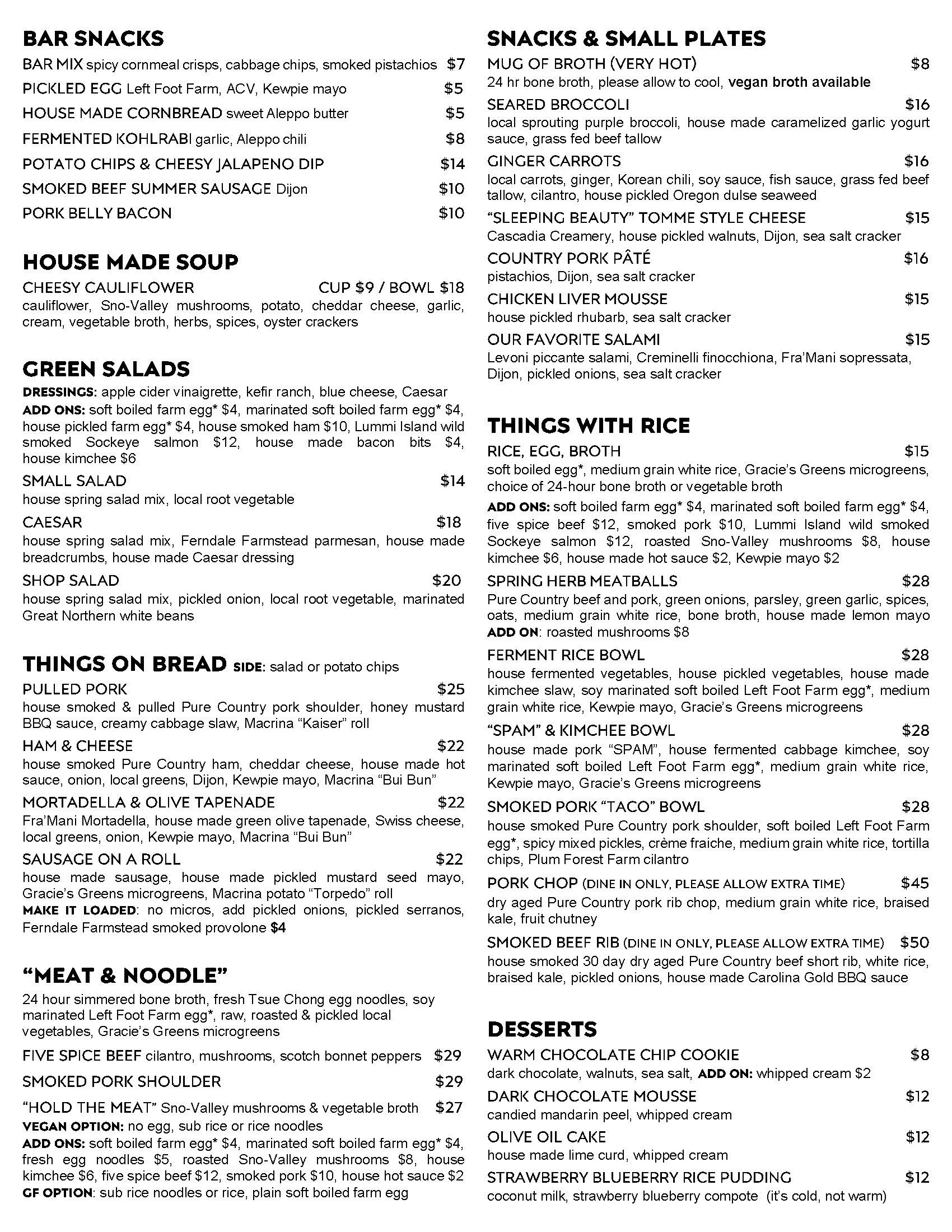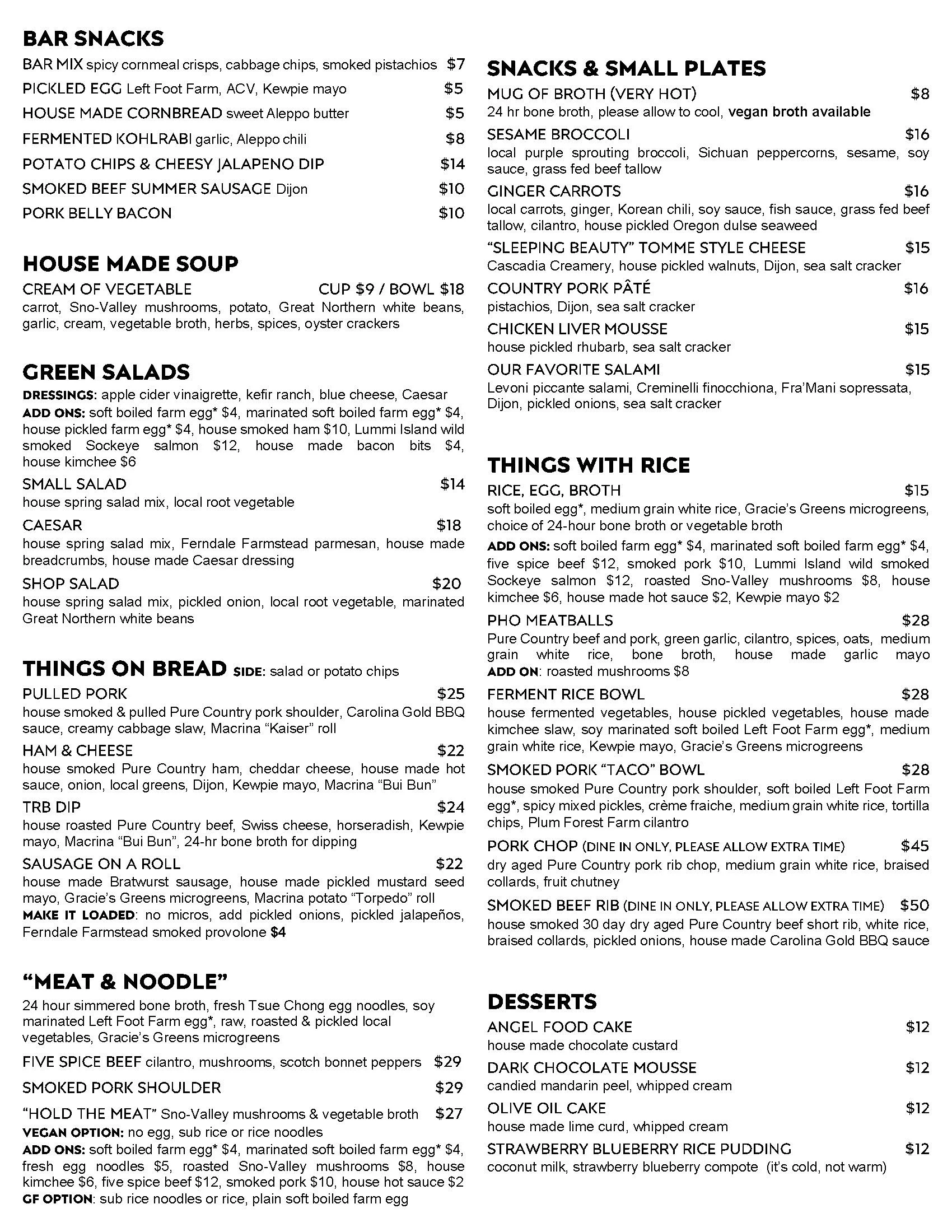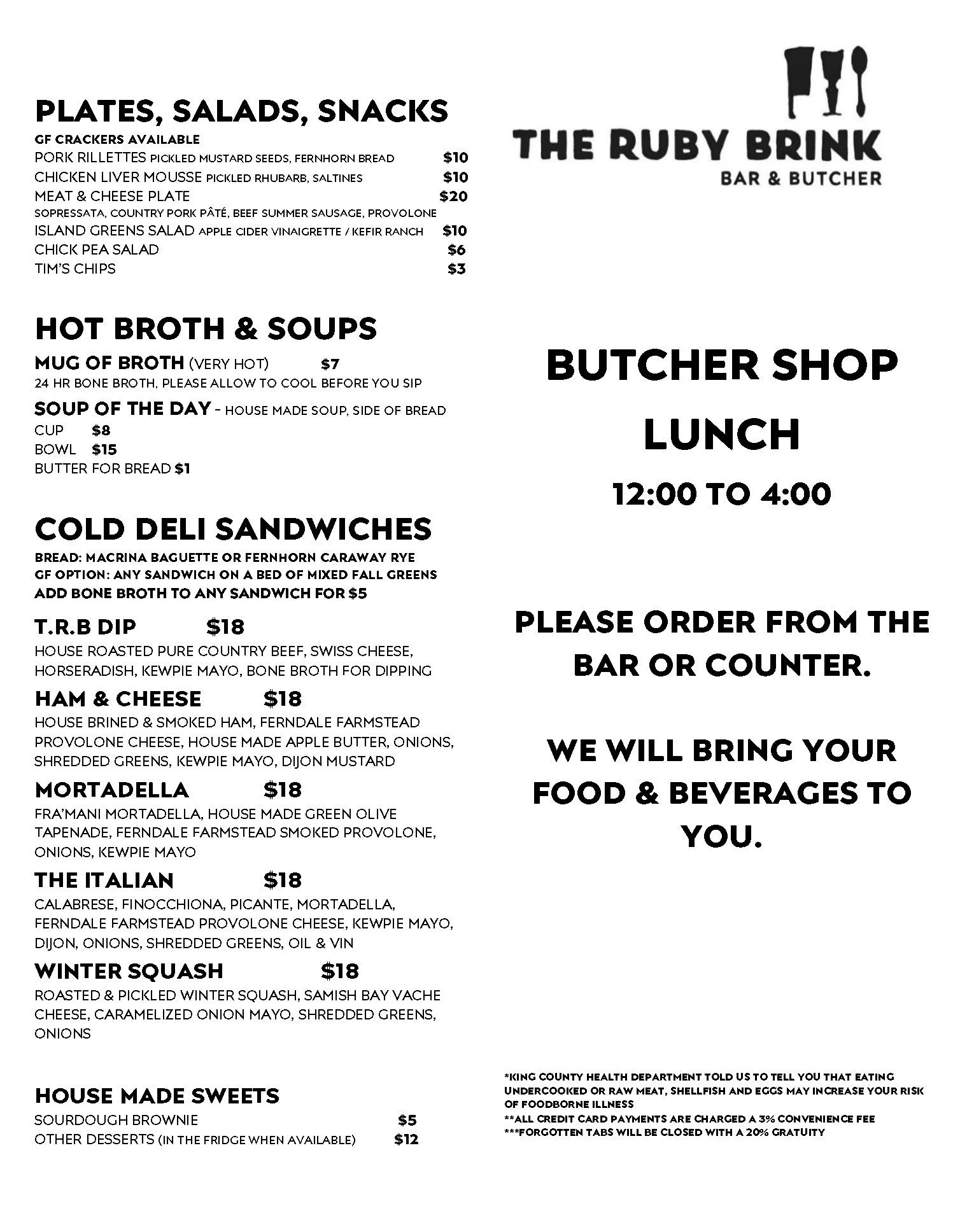 Butcher Shop: 12:00 - 5:00pm MEATS, SANDWICHES & GROCERY