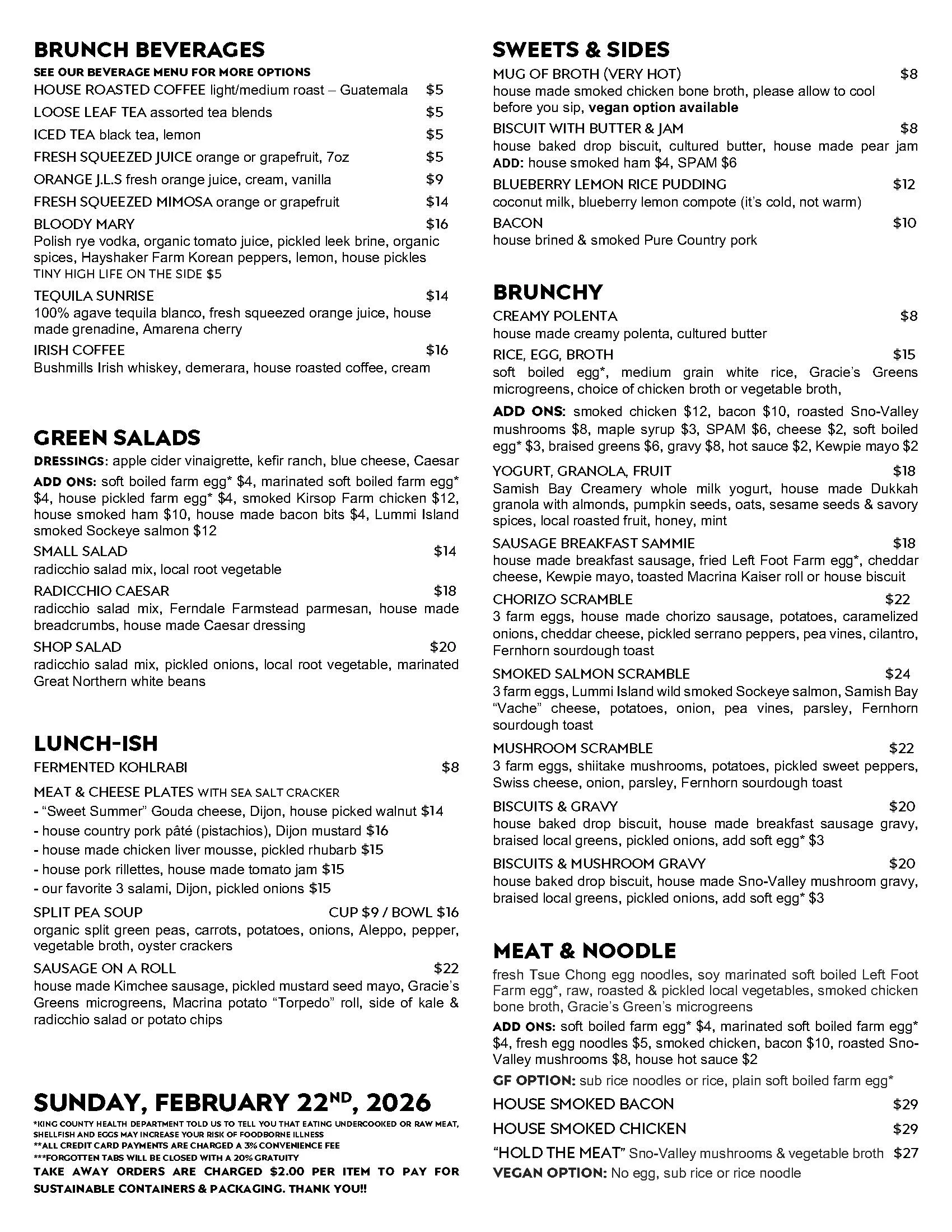 SUNDAY BRUNCH HOURS - 10:00am - 4:00pm