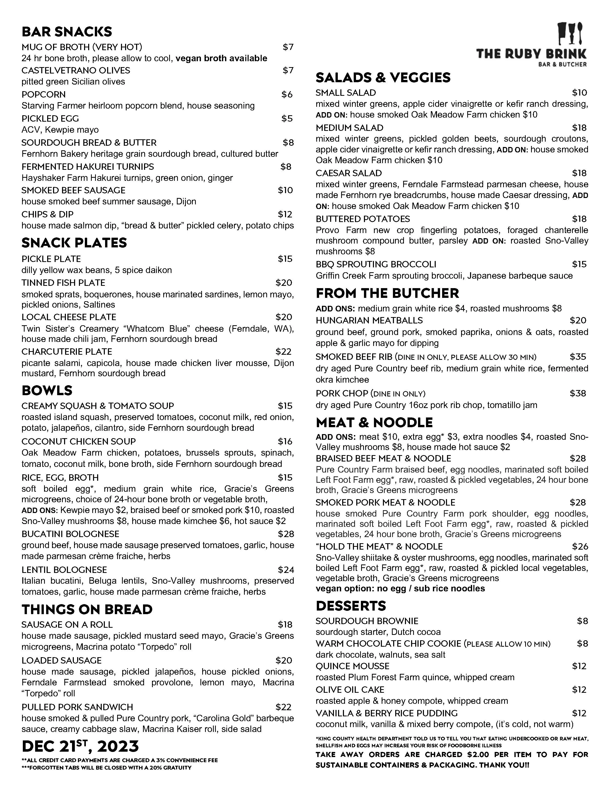 BAR OPEN ALL DAY T-Sat: 12:00pm - 10:00pm