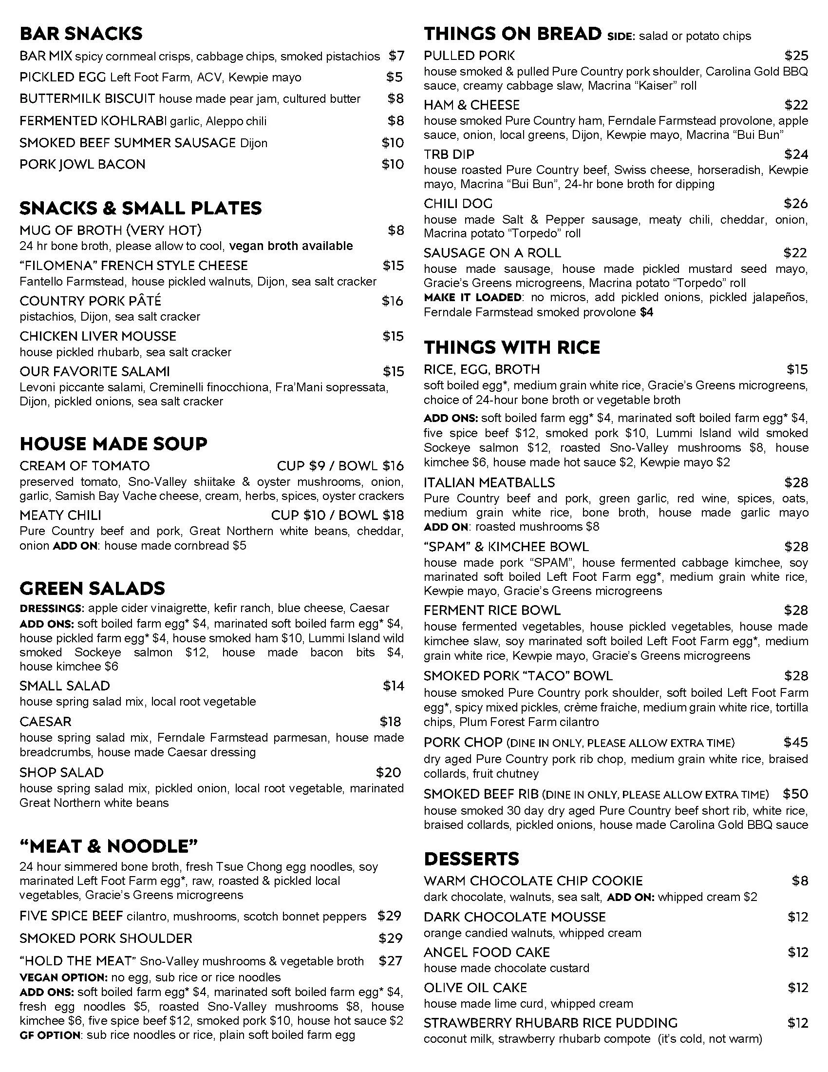 The Ruby Brink is a bar & butcher shop on Vashon Island whose values align with tradition, agriculture and craft. Equally a public house for gathering as a destination for casually spectacular food and beverages. The Ruby Brink focuses on whole animal butchery, thoughtful sourcing of all ingredients, preservation & curing in the kitchen and comfortably exciting cocktails, cider, wine & beer.